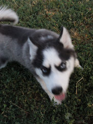 Anna is a F1 (first generation) Pomsky. She has had two litters with us and give us beautiful puppies. We even kept two Daughters back. She now is with an active family who will keep her happy and loved the rest of her days.