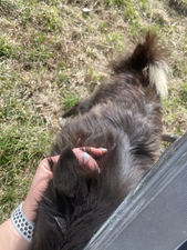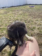 Cinder is a F2 (second generation) Pomsky. She has had three litters with us and give us beautiful puppies. She is now with a wonderful lady and her Australian Shepherd. They are best buddies and Cinder ADORES her new mommy